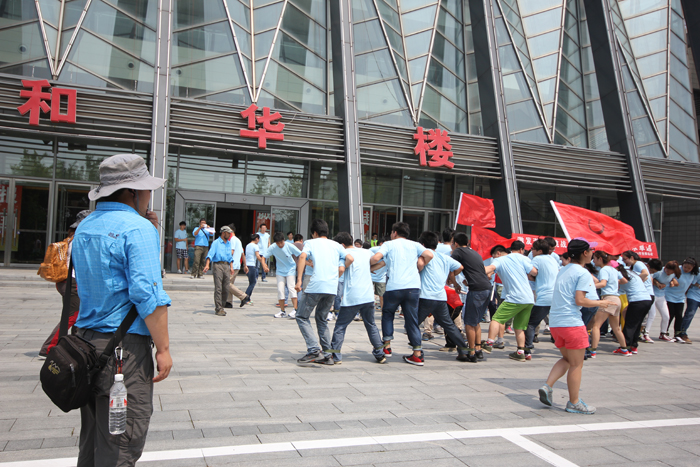 學員們在教練的指導下練習拓展項目“龍行天下”