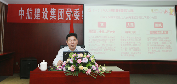 隨后,陳先瑞書記的黨課將此次活動推向了高潮。陳書記的授課從“中國特色社會主義進入新時代”“努力開創(chuàng)中航建設發(fā)展新格局”兩個層面入手,以新時代產(chǎn)生新思想,新思想引領跨入新征程為切入點,生動講述了十八大以來中國取得的輝煌成就,展示了中華民族從站起來、富起來到強起來的偉大飛躍;向全體中航建設人吹響了融入時代發(fā)展大潮、共建企業(yè)美好未來的集結號。陳書記號召大家必須順應時代的發(fā)展,做到學習新思想,忠誠勇當擔,以永不懈怠的精神狀態(tài)和一往無前的奮斗姿態(tài),施展新作為,闊步新征程。