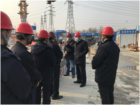 隨后,陳董事長一行來到項目施工現場,聽取了項目負責人關于疫情防控期間作業密度安排、勞務人員管理、安全文明施工及施工進度等方面的情況匯報。在充分肯定項目部工作的同時,陳董事長囑咐大家,目前全國正處于疫情防控的關鍵時期,復工復產帶來的疫情防控壓力不容小覷,項目部要充分認識做好疫情防控工作的極端重要性和緊迫性,嚴格落實各項防控措施,強化管理,確保責任到人、任務到點,確保疫情防控各項工作有力有效有序推進,努力爭取防疫生產雙勝利。