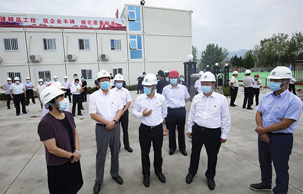 6月29日,懷柔區(qū)區(qū)委書記、懷柔科學城黨工委書記戴彬彬,區(qū)委副書記、區(qū)長、懷柔科學城黨工委副書記于慶豐及區(qū)人大、區(qū)政協(xié)、區(qū)委政法委、區(qū)紀委等主要領(lǐng)導一行蒞臨我集團公司承建的雁棲國際社區(qū)項目視察指導。北京懷柔科學城管委會副主任任建民、丁明志,北京懷柔科學城管委會開發(fā)建設(shè)處處長史忠峰,北京市長城偉業(yè)投資開發(fā)總公司黨委書記、董事長單景民,黨委副書記、總經(jīng)理周志斌,項目監(jiān)理方、設(shè)計方領(lǐng)導,集團公司黨委書記、董事長陳先瑞及項目相關(guān)負責人等迎接陪同。