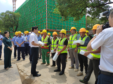 8月21日上午十一點,接近中午烈日炎炎,湘江集團(tuán)黨委書記、董事長張利剛一行來到中航建設(shè)集團(tuán)承建的長沙科技創(chuàng)意園項目,現(xiàn)場看望慰問高溫天氣下依然堅守戰(zhàn)斗在崗位上的廣大建設(shè)者,為大家送來了冰箱、電風(fēng)扇、涼茶、藿香正氣水、夏桑菊、西瓜等防暑降溫用品。