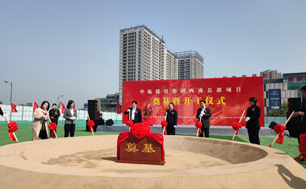 2021年3月27日上午,中航建設集團西南總部奠基暨開工儀式在成都市新都區舉辦。新都區區委書記許興國,新都區副區長劉清,新都區副區長彭茚,中國建筑業協會會長、原住房城鄉建設部總工程師王鐵宏,集團公司黨委書記、董事長陳先瑞出席儀式,并宣布項目開工。