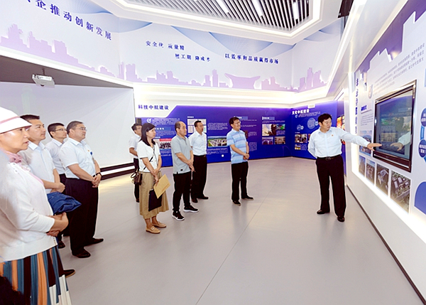 于新華副處長一行首先到集團公司展廳參觀,對中航建設集團發展歷程、產業項目概況、未來發展規劃以及黨建工作進行全面了解。