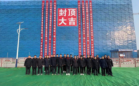2022年1月25日,伴隨著最后一方頂板混凝土澆筑完成,在項目建設、監理、管理等單位的共同見證下,集團公司承建的一零一中學懷柔校區擴建項目(1#教學樓等4項)南區工程喜迎封頂。